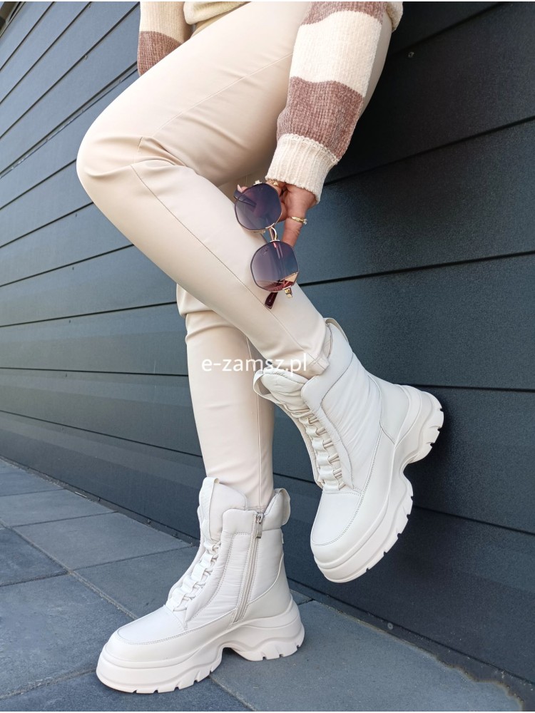 Damskie beżowe trapery z eko skóry
